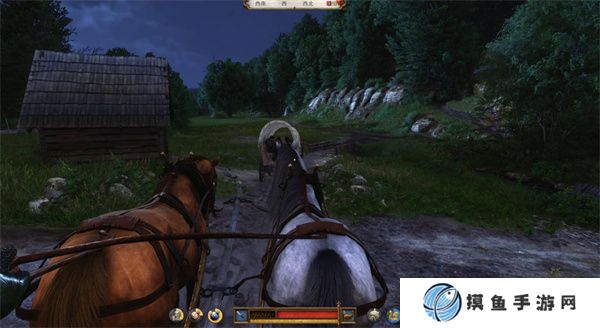 1、首先,前往 马车运输的地点,你会看到一辆马车正在运输货物。