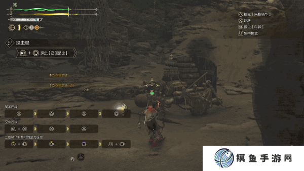 特殊键+左攻击 为放出猎虫采取精华,猎虫攻击到的部位会获得相应颜色的精华